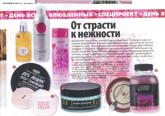 В февральском номере бьюти-редакторы Star hit поместили материал, приуроченный ко Дню всех влюбленных. В нем рассказывается, какие средства могут помочь любящей паре провести этот день незабываемо! Нам особенно приятно, что выбор специалистов пал на массажное масло Banshou Intim от CIEL parfum!